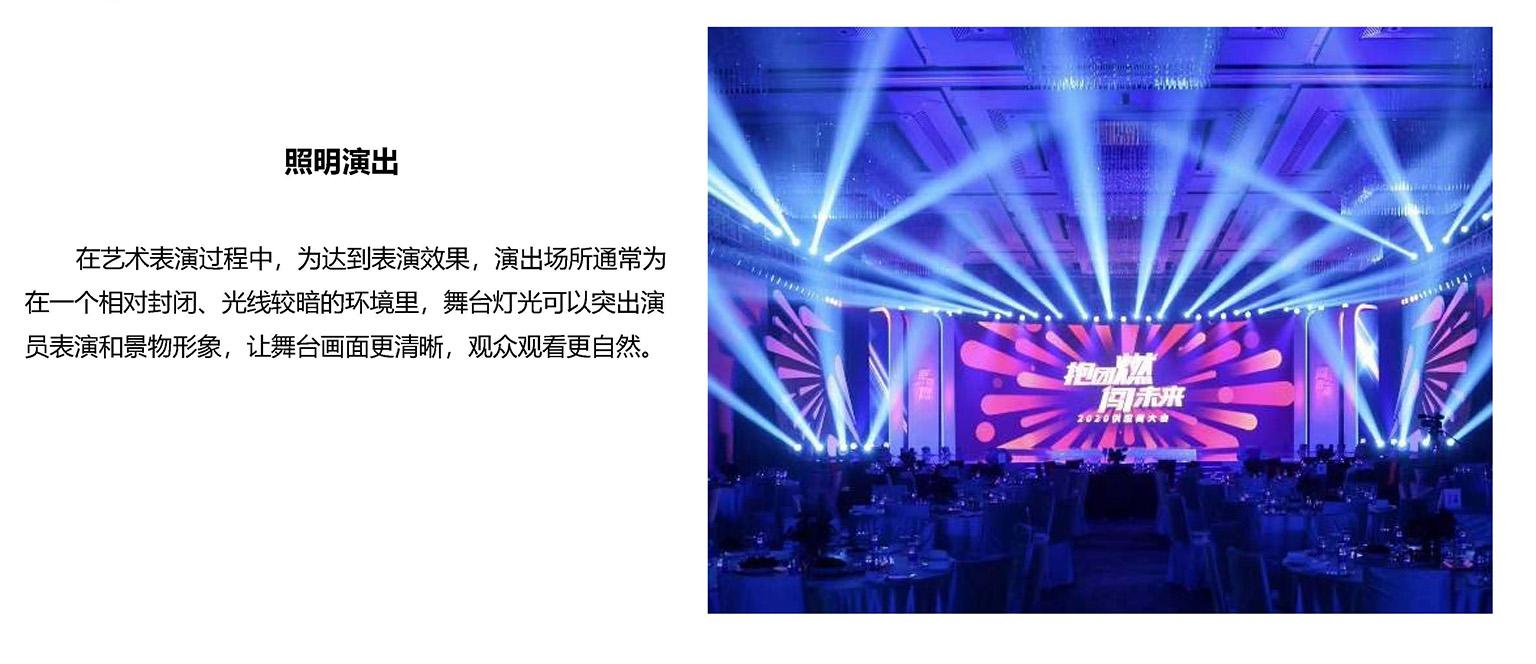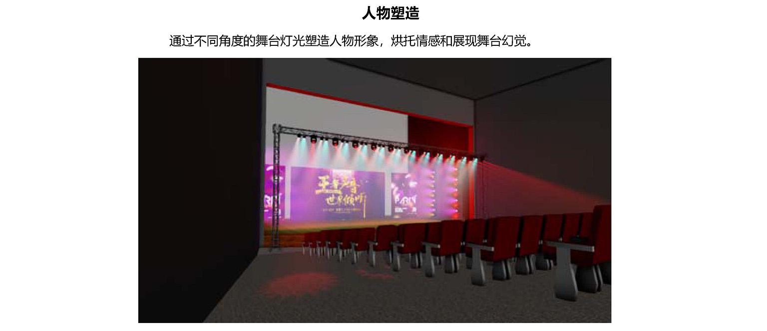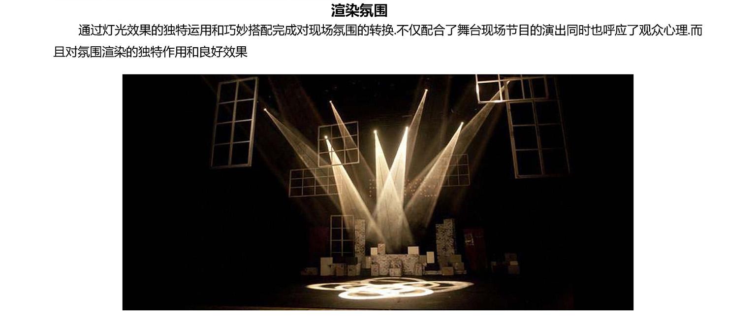 舞台灯光是演出空间构成的重要组成部分。是根据情节的发展对人物以及所需的特定场景进行全方位的视觉环境的灯光设计,并有目的将设计意图以视觉形象的方式再现给观众的艺术创作。应该全面、系统的考虑人物和情节的空间造型,严谨地遵循造型规律,运用好手段
