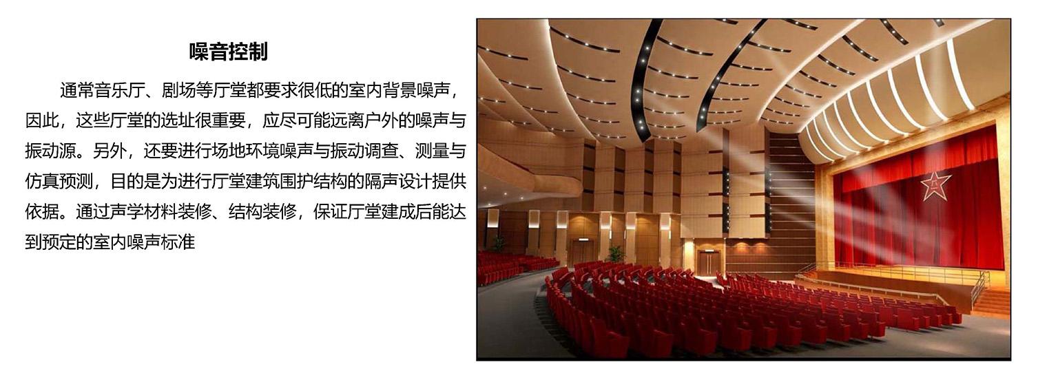 建筑声学(architectural acoustics)是研究建筑中声学环境问题的科学。它主要研究室内音质和建筑环境的噪声控制,以保证室内具有良好听闻条件。打造一个无回声、多重回音、颤动回音、声聚焦和共振等缺陷,且不受设备噪声、放映机房噪声及处理环境噪声的干扰的完美声学环境